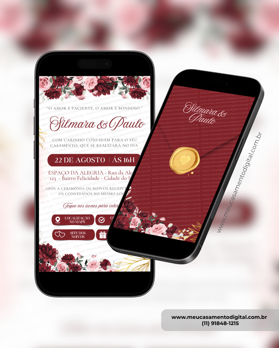 Convite de Casamento Interativo com Envelope Digital Marsala